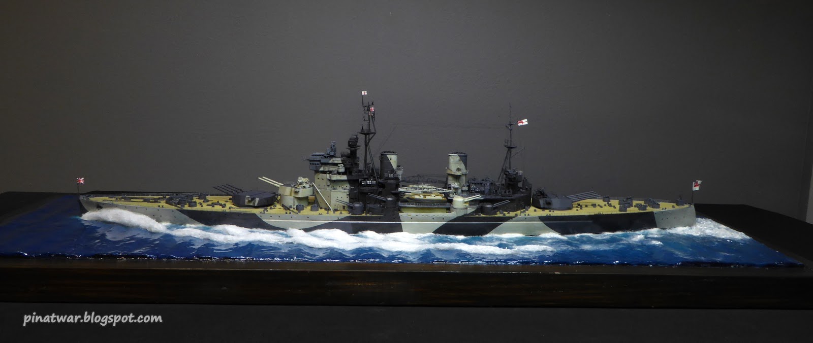 It took me almost 2 years to finish this Tamiya 1/350 scale model of British flagship from the times of Second World War. It was definitely the most time consuming project of my life. During that time, I learned a lot of new techniques and improved my skills. Despite that I will probably never repeat a project like that again. If I were to start again I would choose something in much smaller scale like 1/700. I think that this would be still a very satisfying range yet It should take smaller amount of time and effort to accomplish.